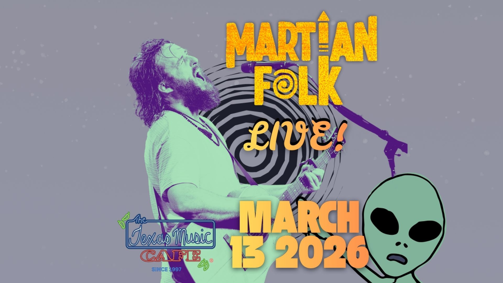 Known for a sound that travels “from earthly rhythms to intergalactic melodies,” Martian Folk offers a live experience that is equal parts foot-stomping folk and cosmic jam session. Whether you are a long-time fan or a first-time listener, this is your chance to catch them in the intimate, listening-room environment that only the Texas Music Cafe can provide.