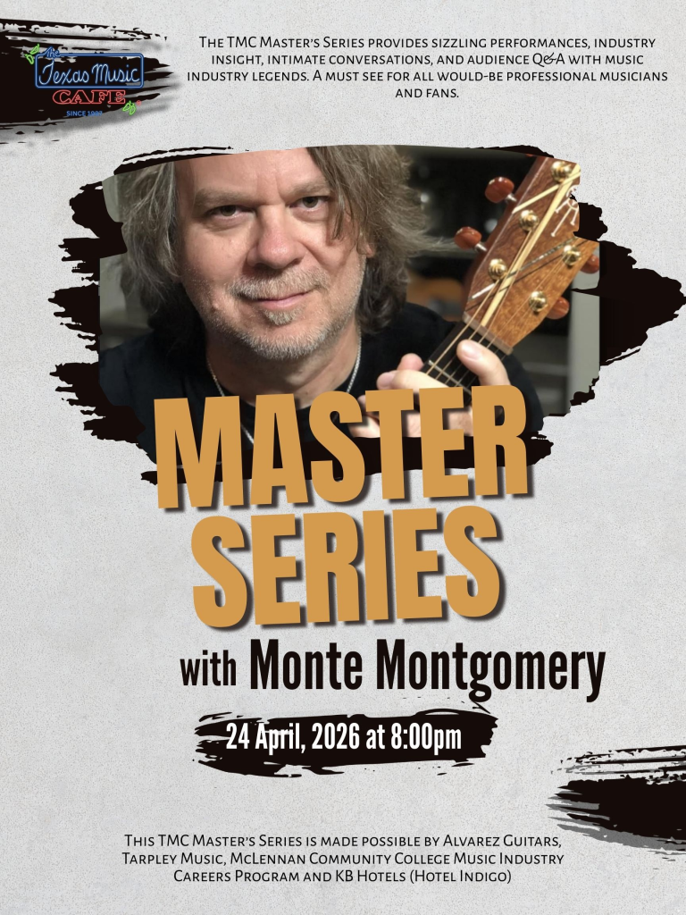 Experience a masterclass in guitar technique as Monte Montgomery and Phil Bass discuss Songwriting, the music business and creative inspiration. Often cited as one of the “Top 50 All-Time Greatest Guitar Players” by Guitar Player Magazine, Montgomery is renowned for his ability to coax sounds from a standard acoustic guitar that seem impossible. The TMC Master’s Series provides sizzling performances, industry insight, intimate conversations, and audience Q&A with music industry legends. A must see for all would-be professional musicians and fans.